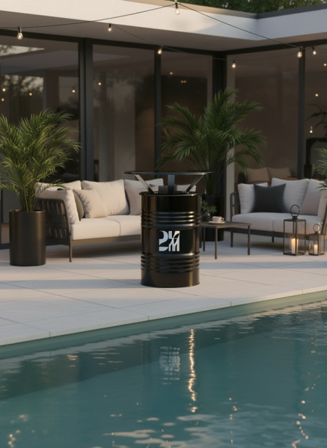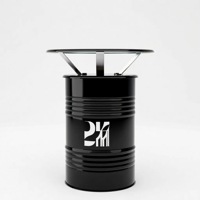 Ce modèle unique transforme un baril industriel en une table haute personnalisable, idéale pour les :