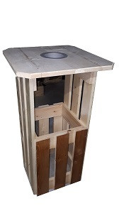 C'est une table conviviale haute pour discuter entre amis, avec un petit coin fumeur et une partie poubelle pour récolter les déchets.