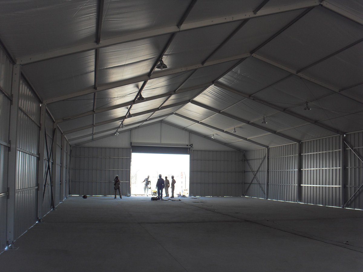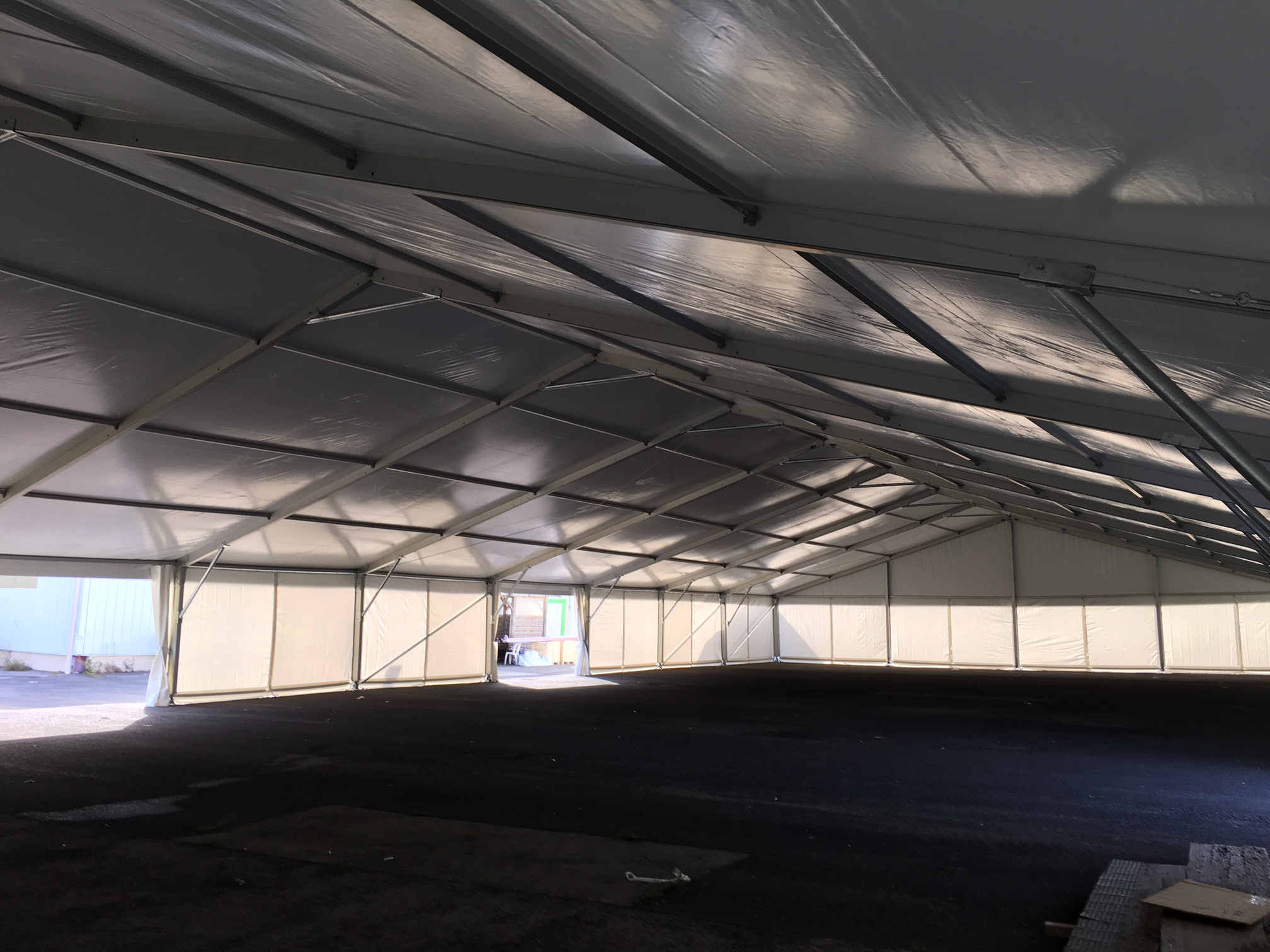 17/01/2022j"ai déjà une dalle béton et je cherche une solution d"un abri de stockage sous forme de tente mais elle doit résister aux intempéries . hauteur au plus bas 4m50. Cordialement.