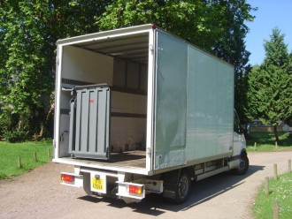Hayon à installer à l"arrière d"un Master Renault 20 M3, et qui puisse se replier sur un coté.