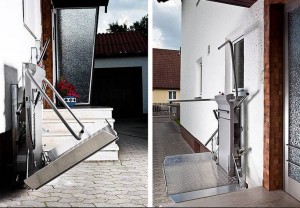 Monte-escaliers à plateforme modèle DELTA Rabattement et pliage automatique à un moteur télécommandé. et plateforme élévatrice verticale modèle LiftBoy Typ 3 devis pour le 2