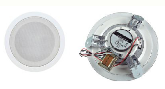 Un équipement de sonorisation encastrable d'un transformateur audio haute impédance permettant une connexion en ligne 100 V et une restitution du son sans distorsion.