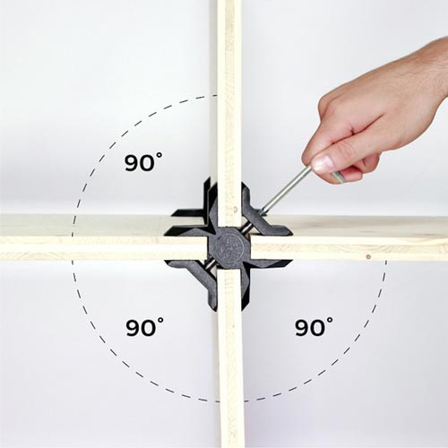 Les connecteurs croix 90° sont conçus pour assembler quatre panneaux à angle droit.