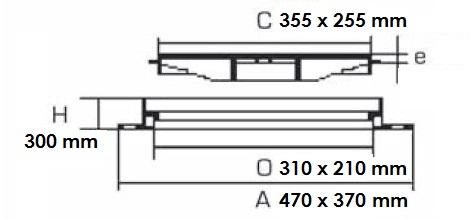 - O : Dimension ouverture du passage : 310 x 210 mm