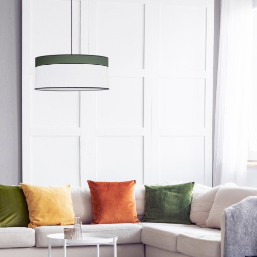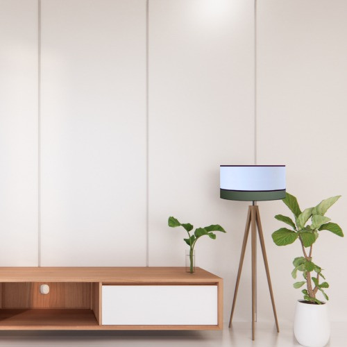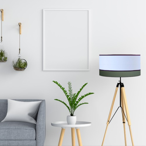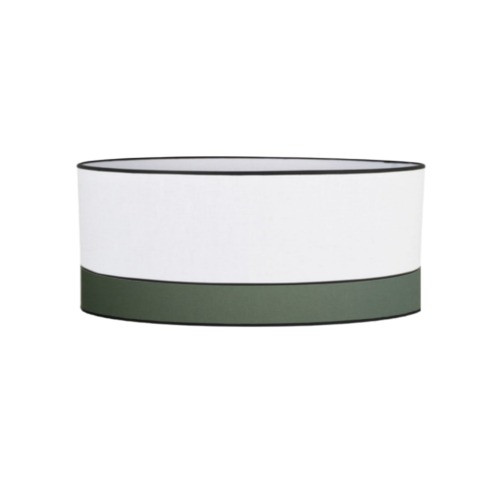 Avec son tissu en coton de qualité, l'abat-jour se distingue par sa combinaison de couleurs blanc et kaki, relevée d'un fin liseré noir.