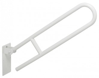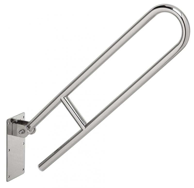 Cette barre d'appui relevable peut rester relevée ou baissée grâce à son système de blocage en position verticale.