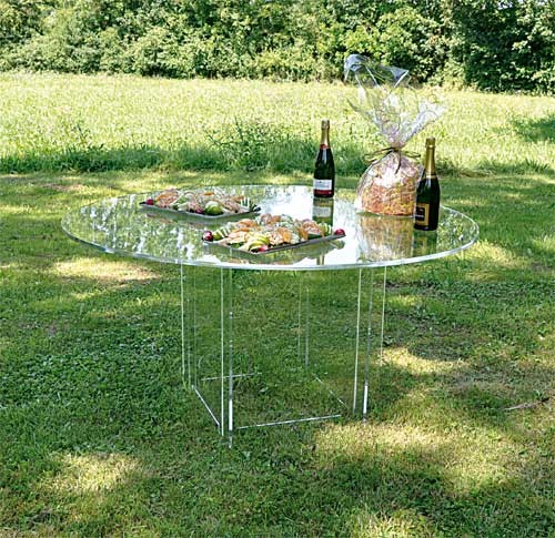 Cette table démontable ronde plexiglas est un meuble de rangement idéal pour vos réceptions ou salons d'exposition.