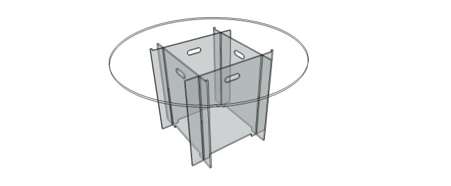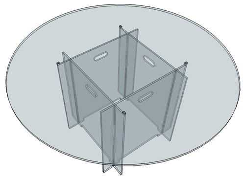 Cette table démontable dispose d’un pied constitué de 4 plaques de plexiglas qui s'emboîtent.