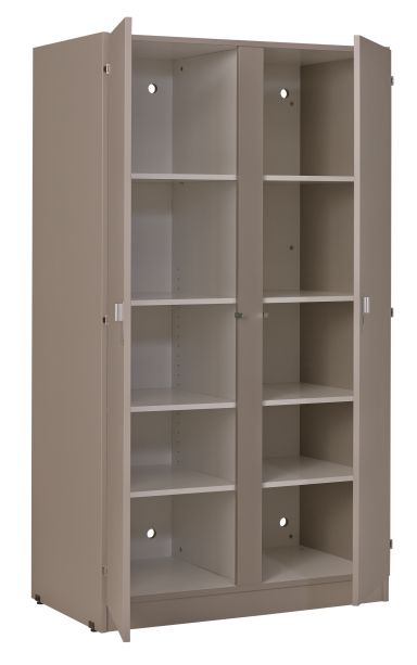 La subdivision interne propose une séparation médiane, permettant d’optimiser le rangement des vêtements, draps et linges : chaque côté est équipé d’une tablette haute fixe pour les affaires peu utilisées, et de trois tablettes réglables qui s’adaptent à votre mode d’organisation ou aux saisons.