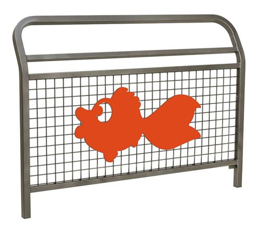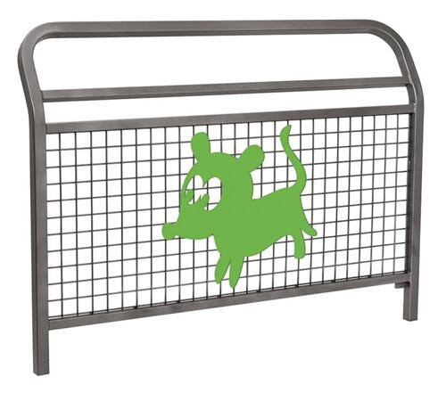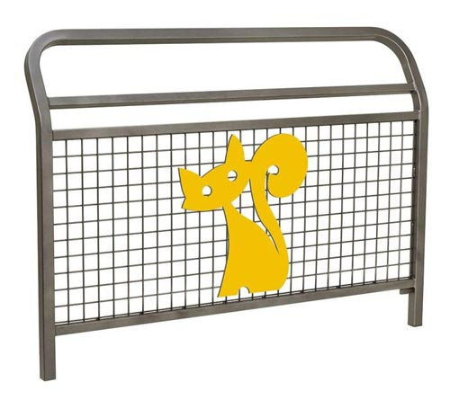 3 animations : Chat, Poisson ou Chien Tôle acier galvanisée 3 mm Finition : peint sur galva selon gamme de couleur spécifique ci-dessous Fixation : animation montée en usine sur le grillage par griffes et rivetage