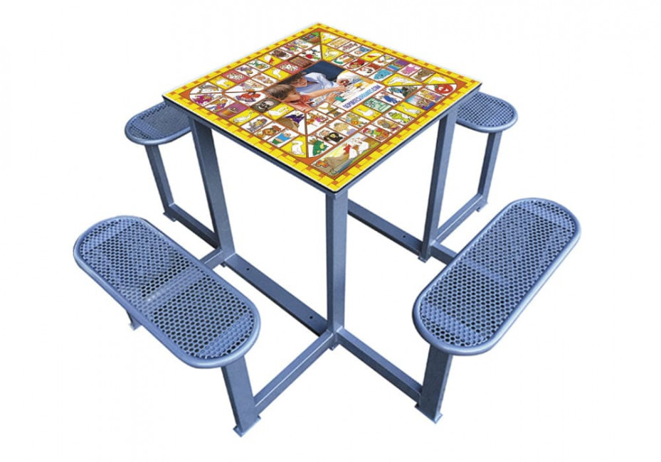 Cette table de jeux est anti-vandalisme et dispose de 4 bancs en acier galvanisé.