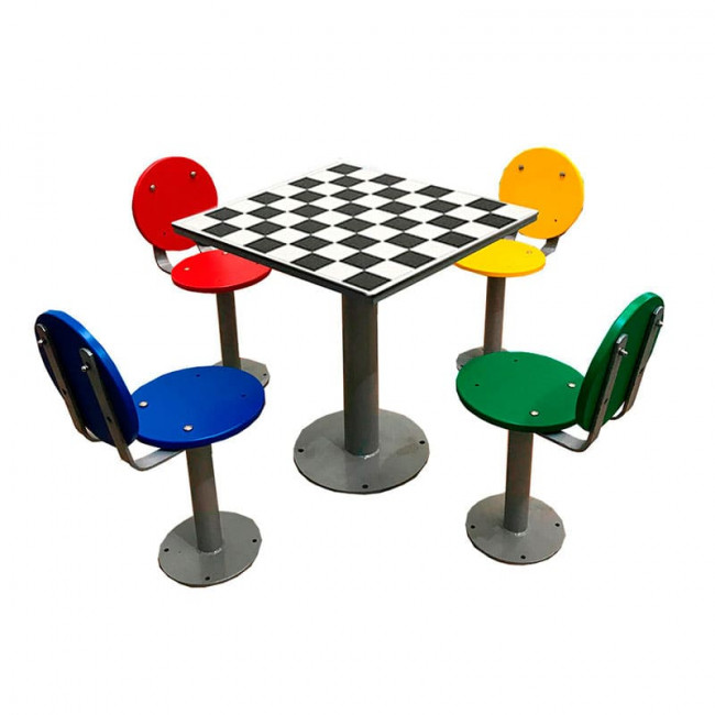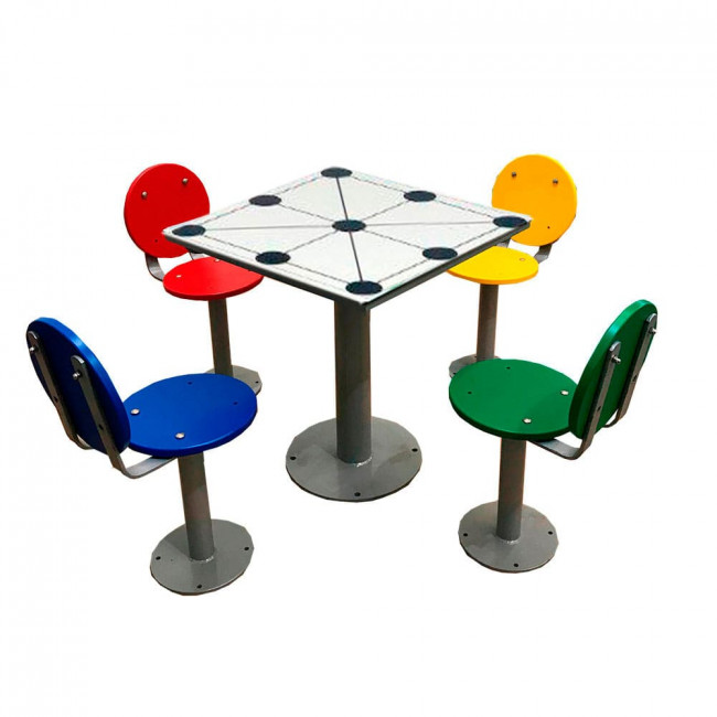Table de jeux plein air équipée de 4 sièges indépendants avec dossier.