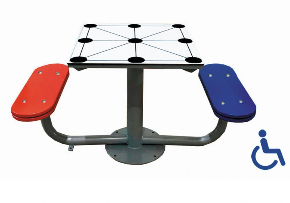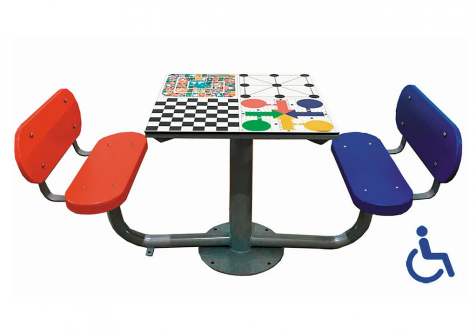 Table d'éxtérieur pour jeux de société : échiquier, jeu de l'oie, jeu des petits chevaux, morpion.