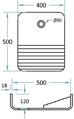 Il peut être personnalisé avec un trop-plein, un trou pour robinetterie et différentes dimensions.