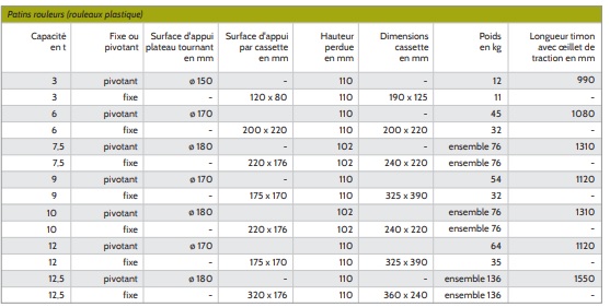 Les patins roulants à rouleaux en plastique sont des dispositifs utilisés pour faciliter le déplacement de charges lourdes ou encombrantes.