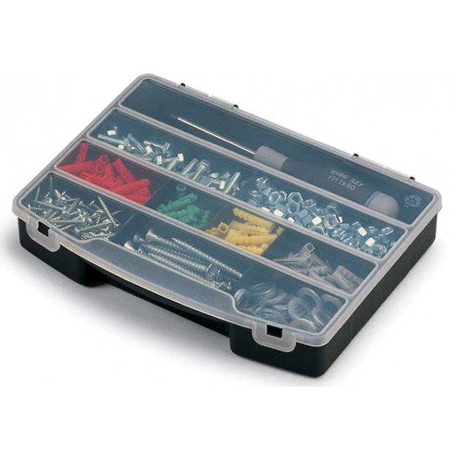 Cette mallette en plastique transparente est conçue pour le rangement de plusieurs outils .