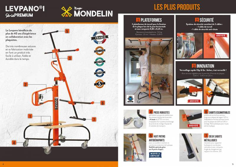 - Deux câbles sont intégrés : 1 câble de travail + 1 câble de sécurité anti-chute. Le deuxième câble prend le relai en cas de rupture du premier. - Une sécurité indéniable aux vues du poids des plaques et des hauteurs de pose.