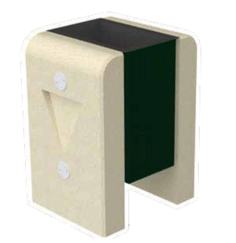 Capacité : 48 L Hauteur : 730 mm En béton Sans couvercle Aspect sablé ton pierre: gris sablé, ocre sablé, blanc sablé Fixation : A poser
