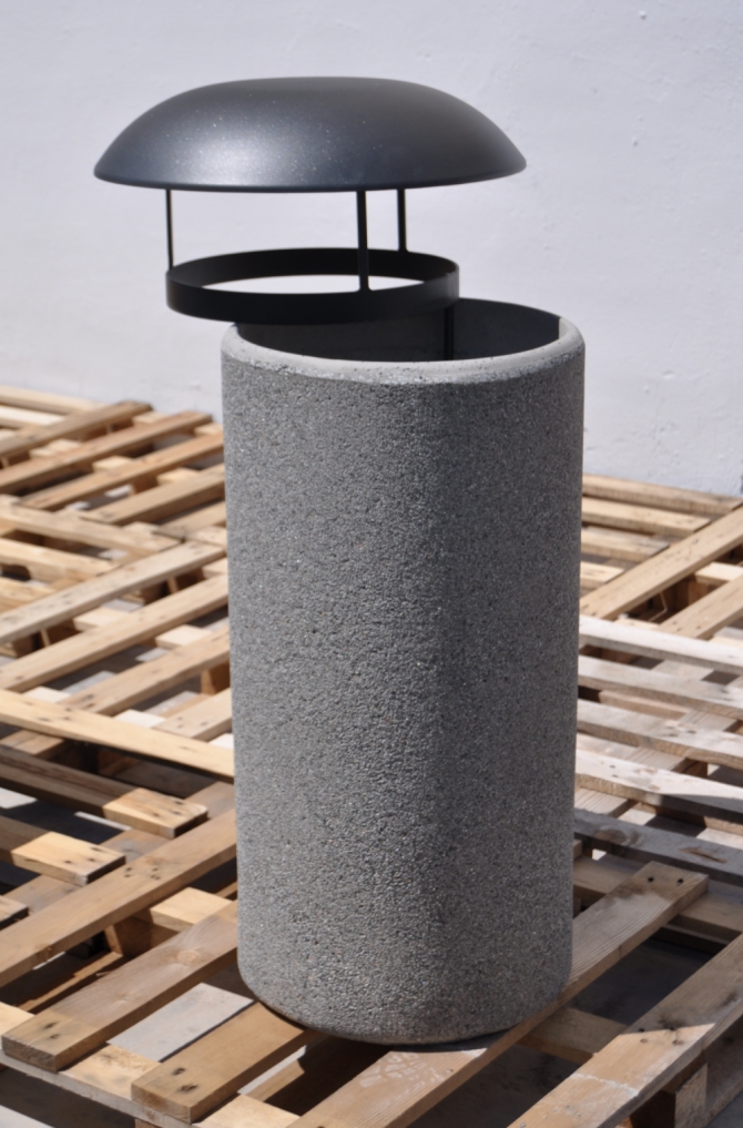 Réf. TC : 371080626Corbeille béton de ville à couvercle métallique 70 Ø 55 x 110 Ocre Béton écologique 119