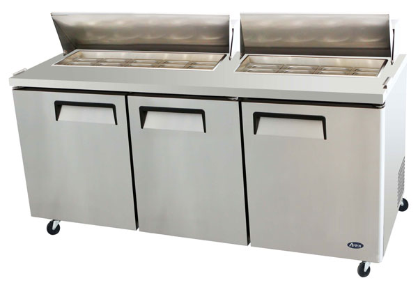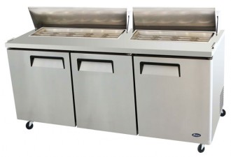 La table réfrigérée à trois portes de gamme américaine est destinée aux professionnels de la restauration.