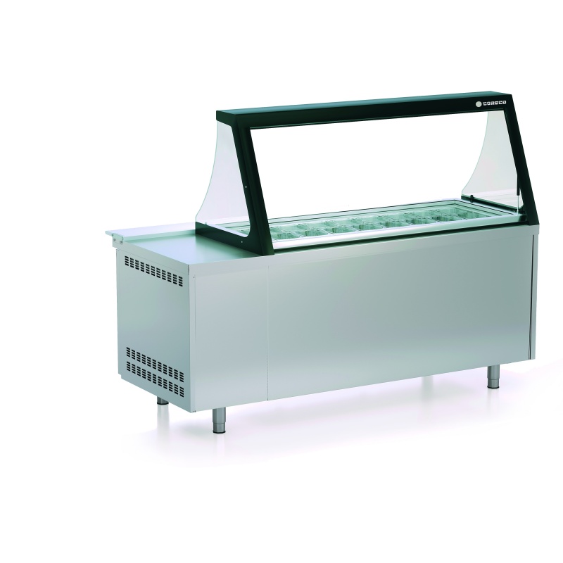 - Structure robuste relevable pour le service avec vitre et rabattable pour conserver encore mieux le froid entre les services