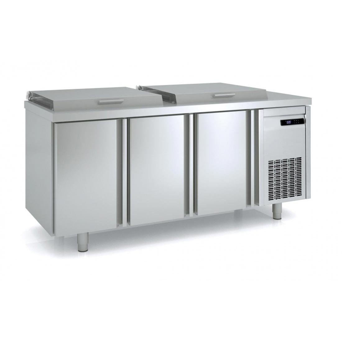 Ce meuble saladette avec couvercle est une armoire réfrigérée conçue pour la préparation de sandwichs, salades, pizzas, etc.