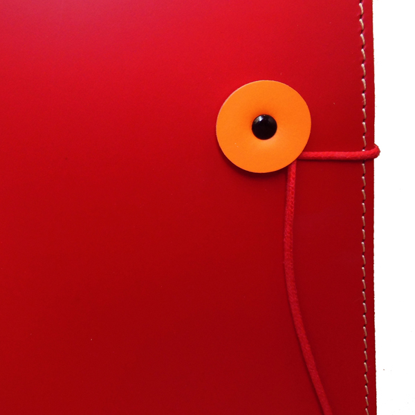 Personnalisations : par marquage à chaud sur le cuir et sur la couverture du cahier à spirale. En option au dos : marquage en creux "Fabriqué en France, Fibres de cuir recyclées". Choix de couleur pour l'élastique, le rivet du bouton de bois ou le cuir de la rondelle. Gravure laser possible sur le stylo.