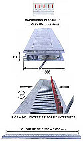 - hauteur des pics 100 à 150mm indicatif, coiffés par capuchons PVC rouge pour protection des piétons
