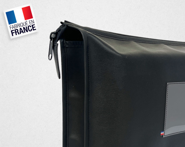 Sa fermeture zippée sécurise le contenu pendant les déplacements, tandis que son organisation intérieure en deux compartiments avec une pochette zippée facilite la séparation des documents. Les patins de maintien placés sous la sacoche améliorent la stabilité et limitent l’usure lors des manipulations répétées.