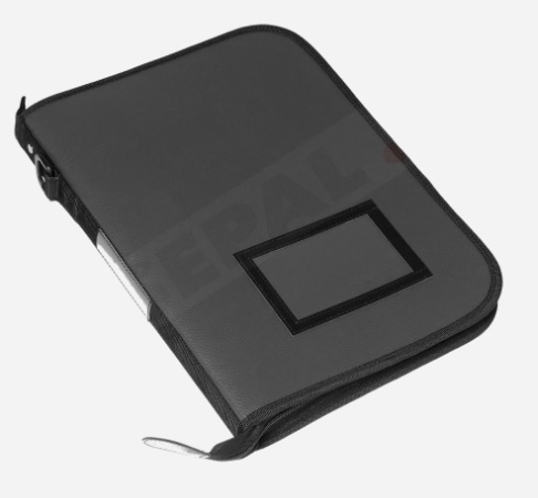 - Rangement à l’intérieur : 1 emplacement pour un stylo, des documents A5, une pochette sécurisée pour une clé USB (fermeture éclair, scratch, …), une poche A4 (voir plus grand pour contenir le dossier avec spirale) avec soufflet de 1-2 cm, 4 emplacements de carte de visite.