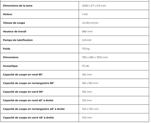 Adaptée pour la coupe de métaux à des angles variant de 0º à +45º à droite, cette scie offre une grande flexibilité pour divers types de travaux.
