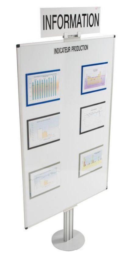 Besoin de tableau d"affichage à l"entrée des ateliers de travail en logistique. Tableau sur un pied et pouvant contenir l"affichage des indicateurs et des modes operatoires.
