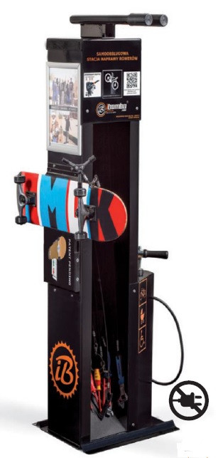 - La station IBOMBO vous permet de mettre le vélo sur les supports, de faire des réparations ou des entretiens du vélo