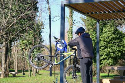 L’installation trouve naturellement sa place dans les campus, entreprises, copropriétés, écoles, magasins, campings, bikeparks et tout lieu où une borne vélo pour collectivités est utile.