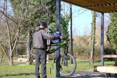 Notre station de réparation vélo murale avec pompe vous permet de proposer un point d’entretien complet aux cyclistes.