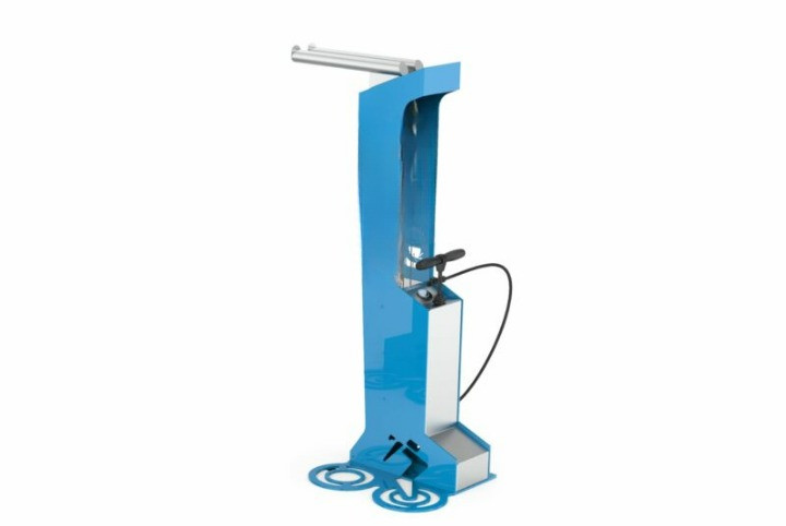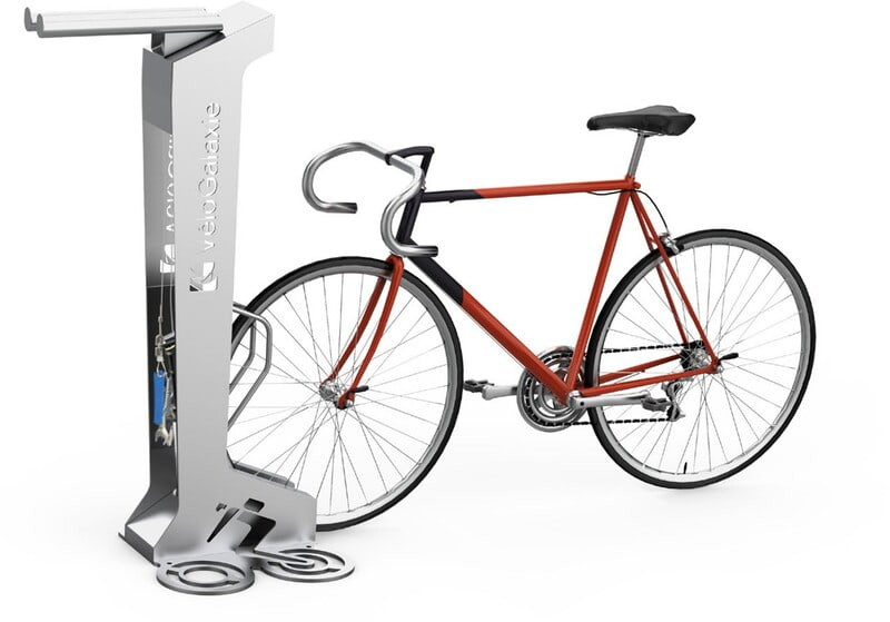 Cette borne de gonflage et réparation vélo permet d’effectuer soi-même (et gratuitement) une réparation ou de gonfler les pneus de son vélo.