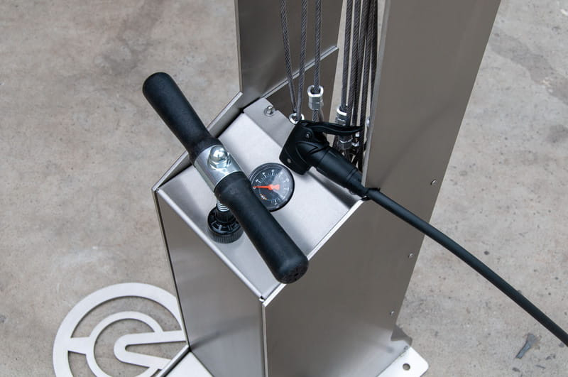 – La pompe de gonflage est carénée dans un coffret en acier pour limiter tout vandalisme. Son manomètre permet un gonflage précis.