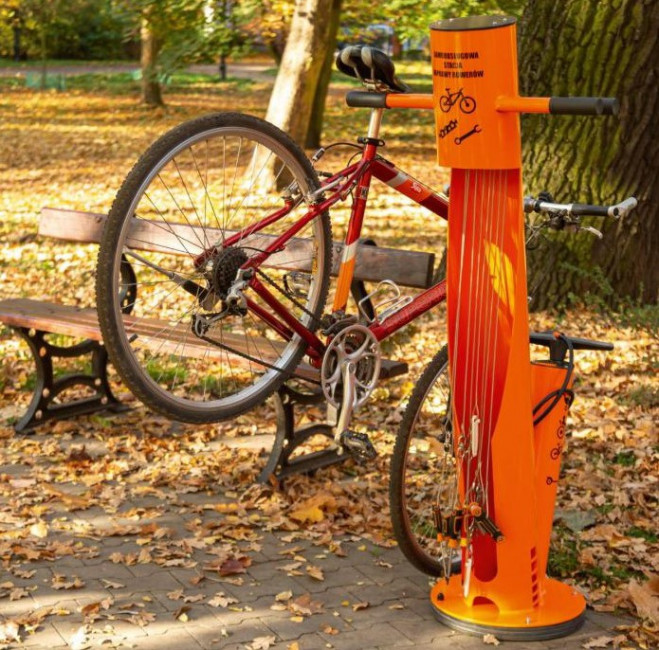 Ce totem de réparation de vélos permet d’effectuer les petites réparations sur son vélo en toute autonomie.