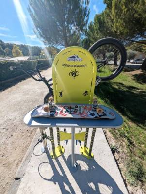 station de réparation pour vélo et matériels de glisse vous permet d’offrir un service complet aux cyclistes et aux utilisateurs de trottinettes, skateboards, rollers, skis ou snowboards.