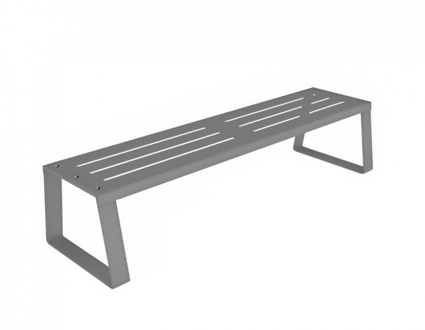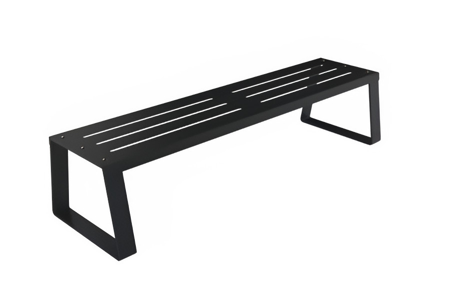 Banquette métallique extérieure sans dossier pour une implantation flexible.