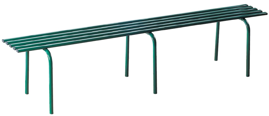 L’assise de la banquette est composée de 5 tubes en acier de couleur verte, et existe également en rouge, gris, noir et bleu.
