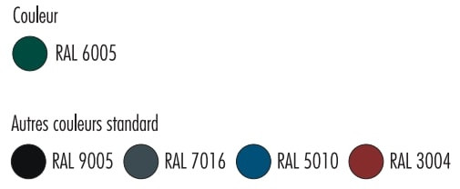 - Coloris : verte, rouge, gris, noir ou bleu. (Autres couleurs sur demande)