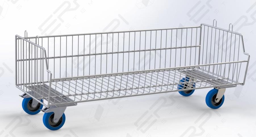 Corbeille à bec en fil sur roulettes - Dim. L300 x P500 x H300 à L1300 x P500 x H1400 mm