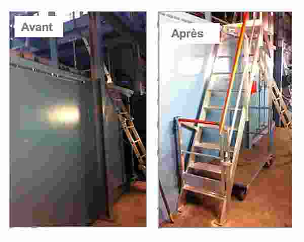 Cet escalier d'accès permet aux opérateurs de franchir un niveau élevé sans danger tout en garantissant une montée et descente sécurisée.