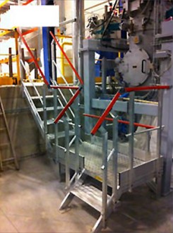 - Escalier et plate-forme sur mesure pour accès sécurisé à une unité de broyage.