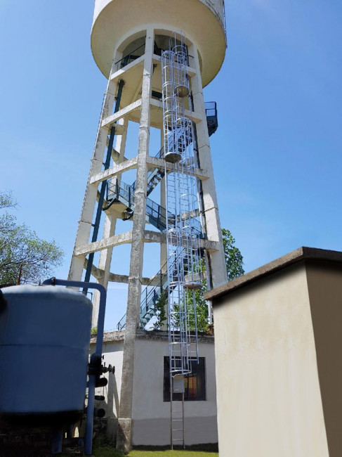 Conçue spécifiquement pour les châteaux d'eau, cette échelle à crinoline offre un accès sécurisé aux zones en hauteur.