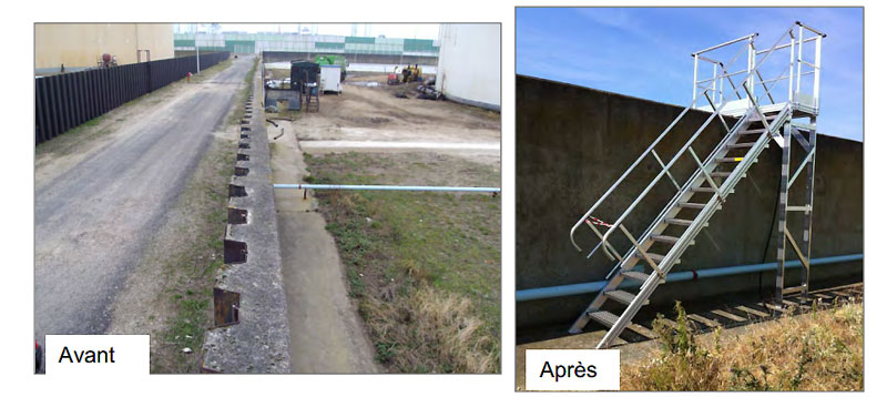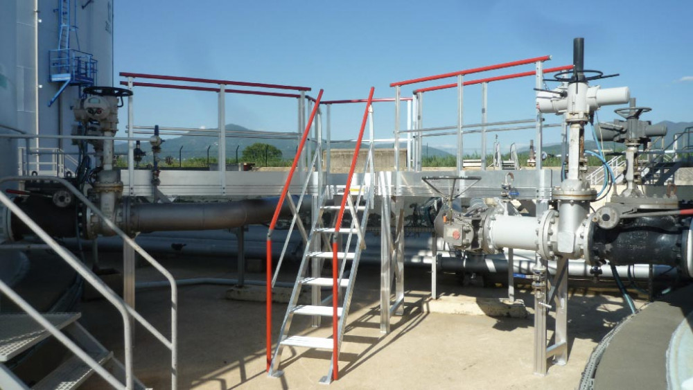 Les marches caillebotis antidérapantes et le garde-corps garantissent un passage sécurisé en minimisant les risques de chute, même dans des conditions de travail difficiles.