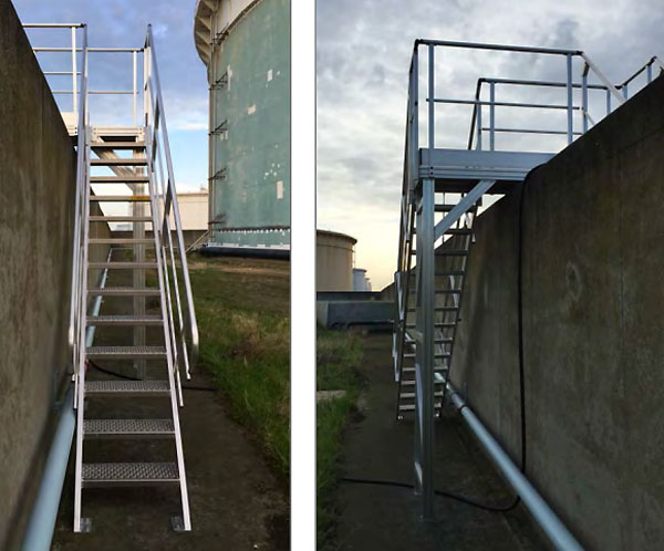 Nos escaliers à palier double accès sont conçus pour faciliter l'accès aux zones de stockage protégées dans les sites pétrochimiques.