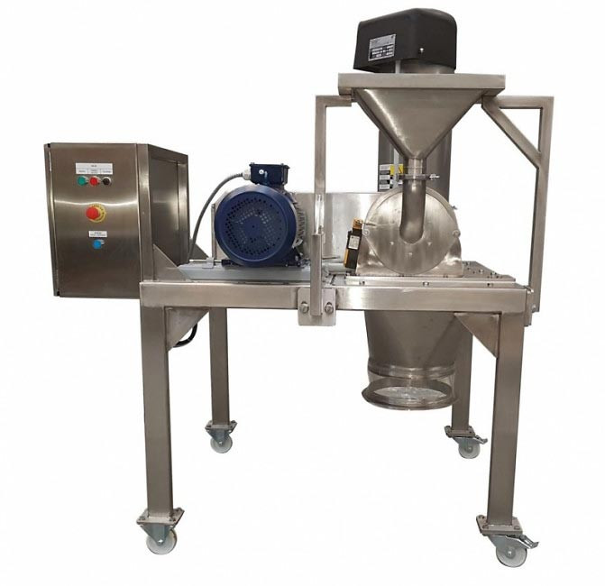 Il permet d’obtenir une granulométrie très fine, allant jusqu’à 10 µm, et est utilisé dans diverses industries telles que l’agro-alimentaire, la pharmacie, les minerais, et la chimie fine.