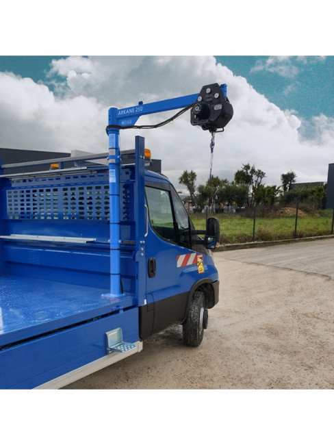 Elle est conçue pour être installée sur des véhicules utilitaires, tels que des fourgons, des bennes ou des plateaux, et pour faciliter les opérations de manutention dans divers secteurs, tels que le bâtiment, l'industrie, l'agriculture, etc.